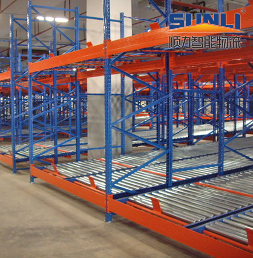 Suitable for first-in first-out, the larger flow of products. The use of roller sliding to the goods to achieve automatic inventory flow, space utilization rate of 85%. Suitable for cold storage, logistics and distribution centers and other large warehouse management use. Ordinary balanced forklift is operational.