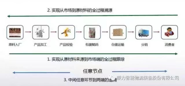 逆向追溯:例如:在某商场买了一桶小包装油,通过油瓶上的二维码信息可以查询到油的相关销售与生产信息,如此油的中间商,出库时间,出库前的货位、托盘,入库时间,生产时间,所使用的原油、瓶胚、瓶盖批次等相关信息。