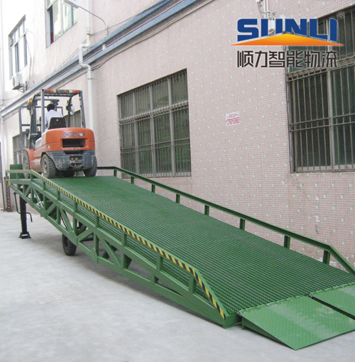 产品特点和应用:应用于装卸站台或装卸位置不固定以及场地狭小等场合,实现了货物快速装卸,通过它使叉车等搬运车辆直接进入货车、无需其它动力,能适用于各种货车及装卸场合,采用支腿支撑和网格装钢板结构,有更可靠的安全性能
